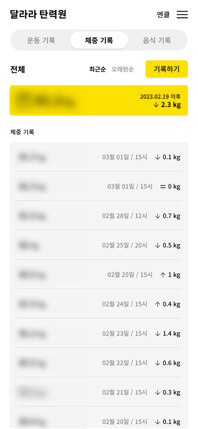 회원은 운동, 음식, 체중 기록을 남기고 트레이너는 이 기록을 확인하고 메모를 남길 수 있는데, 단순히 회원이 기록을 남기는 역할만 하는 것이 아니라 트레이너는 PT 운동 기록을 남겨 회원 스스로 PT 외에도 운동을 할 수 있는 가이드가 되도록 했습니다.