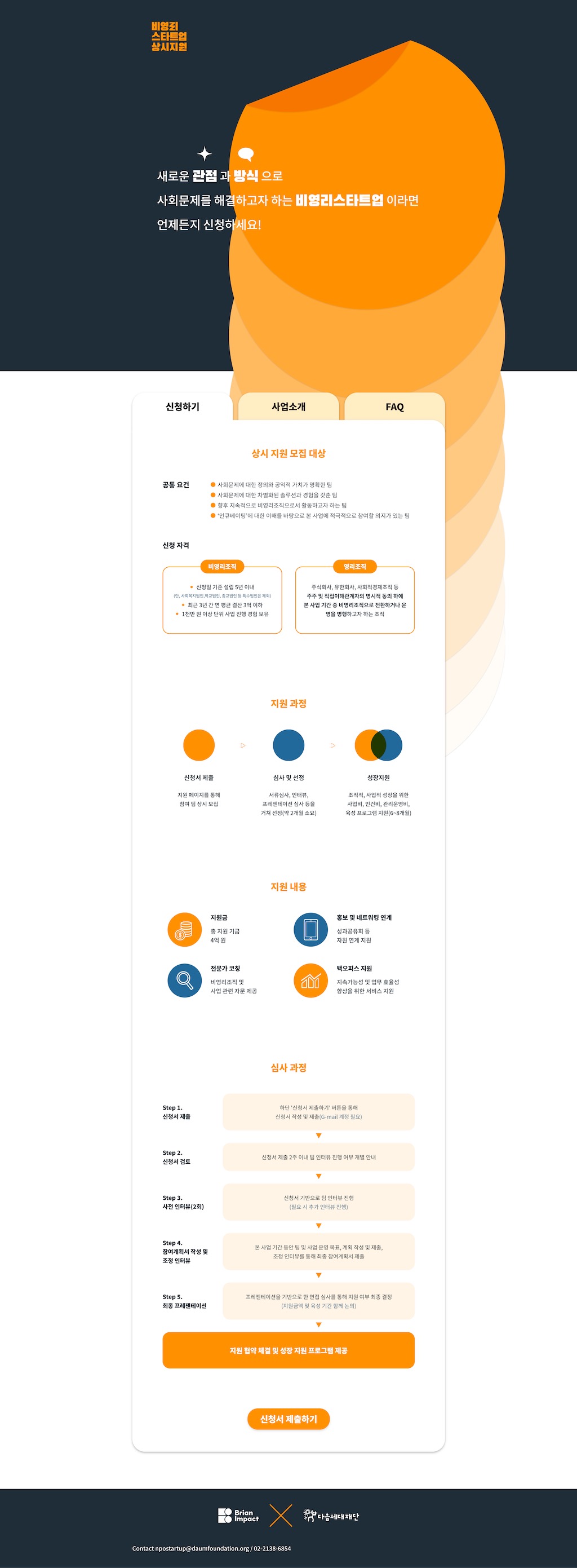 다음세대재단과 브라이언임팩트의 비영리스타트업 상시지원 웹사이트를 개발했습니다.