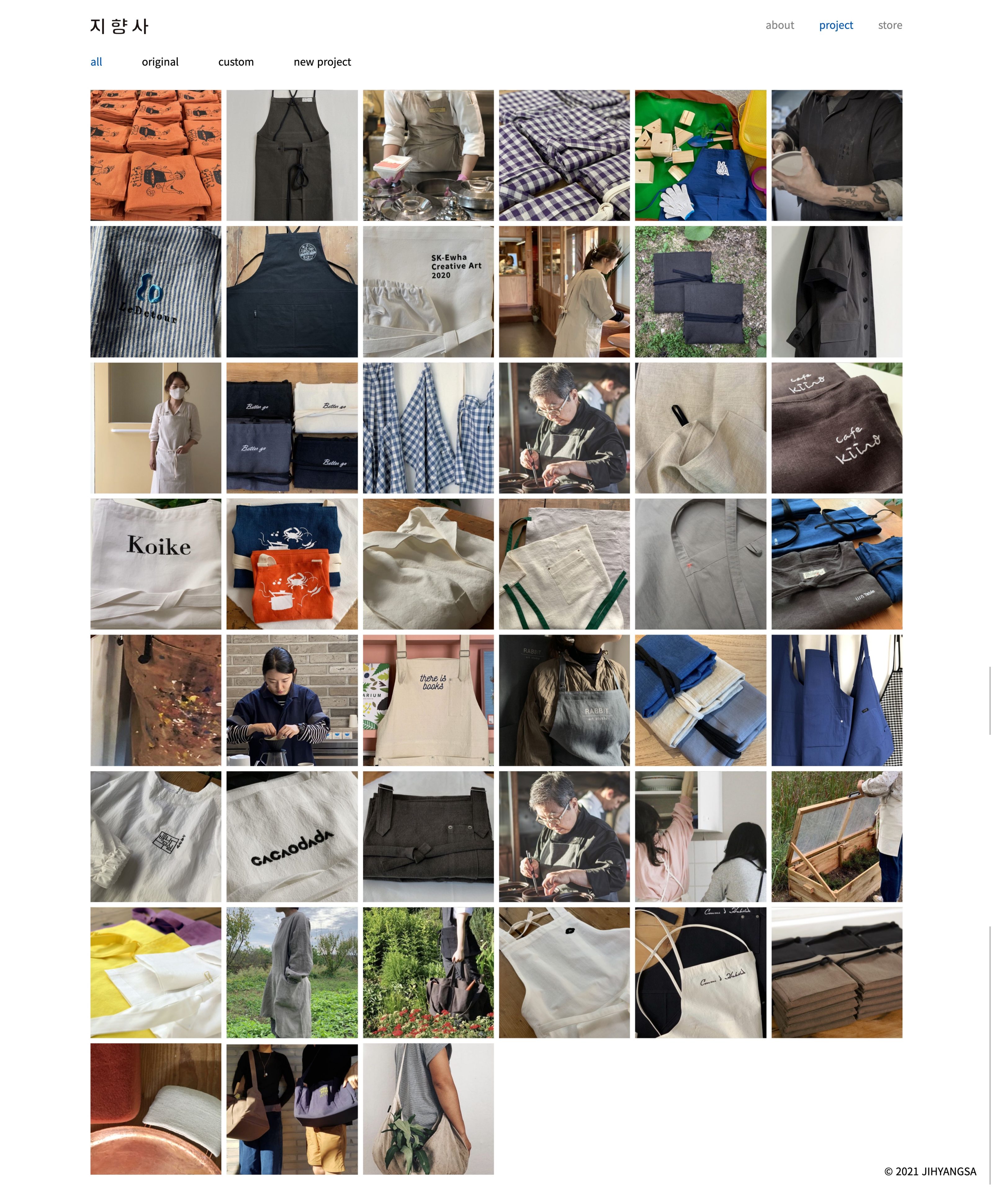 "워커들을 위한 성실한 작업복"을 만드는 지향사의 홈페이지를 개발했습니다. 지금까지 제작한 작업물을 쉽게 확인할 수 있는 아카이브 형태의 홈페이지로 개발했습니다.