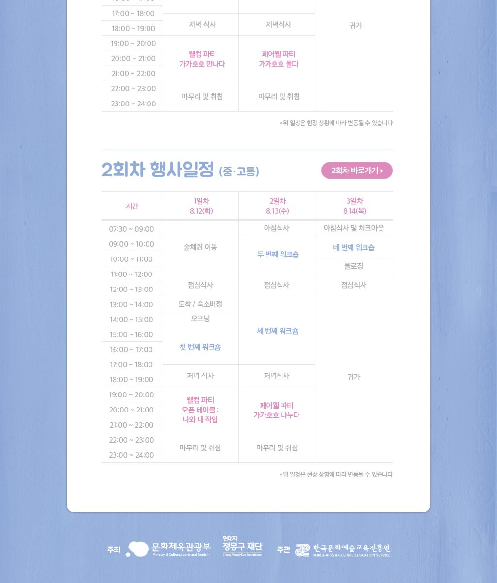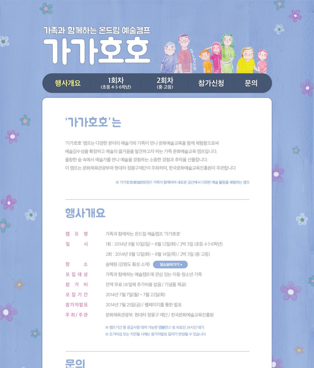 예술캠프인 가가호호캠프의 정보를 전달하는 홈페이지를 제작했습니다.