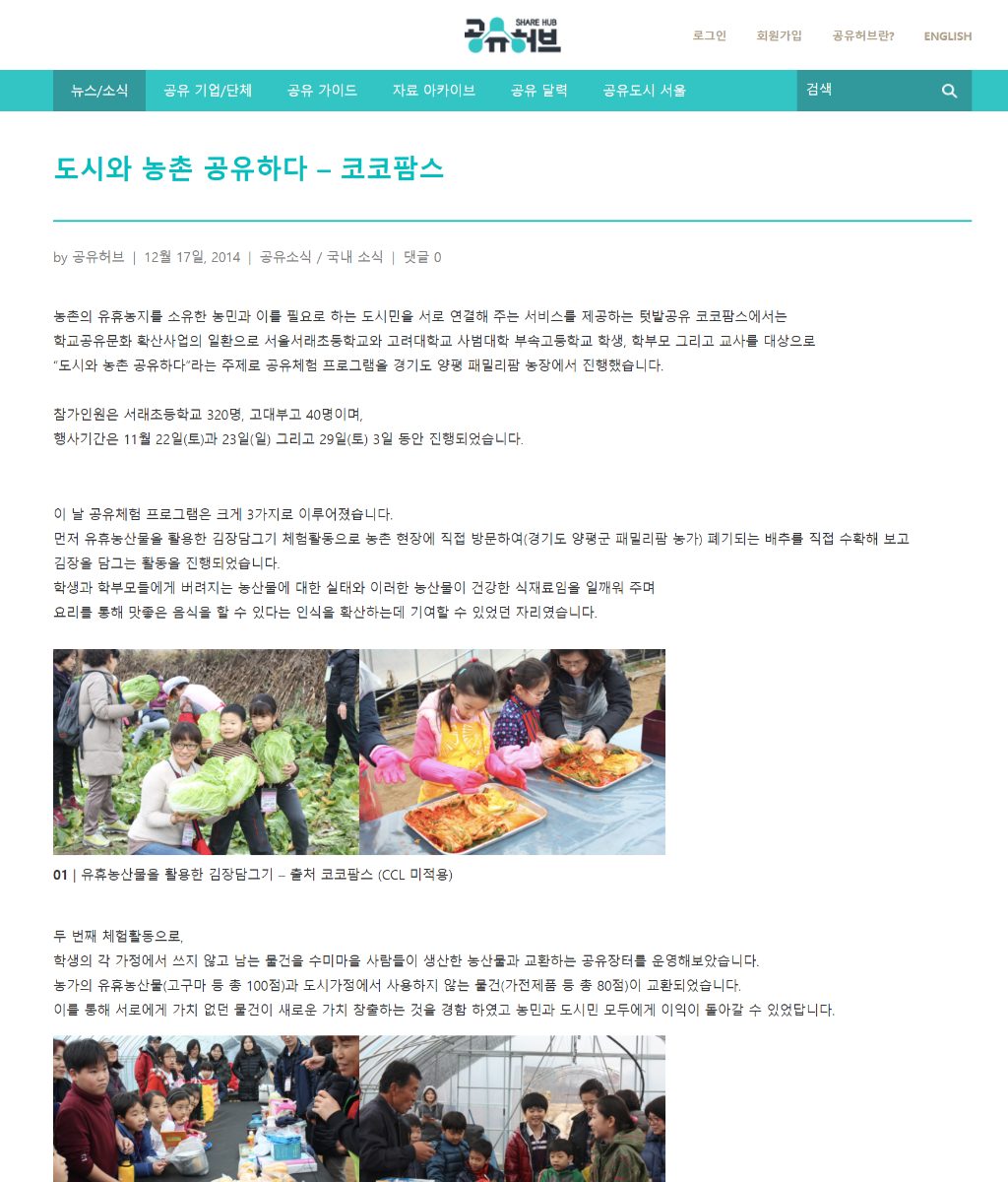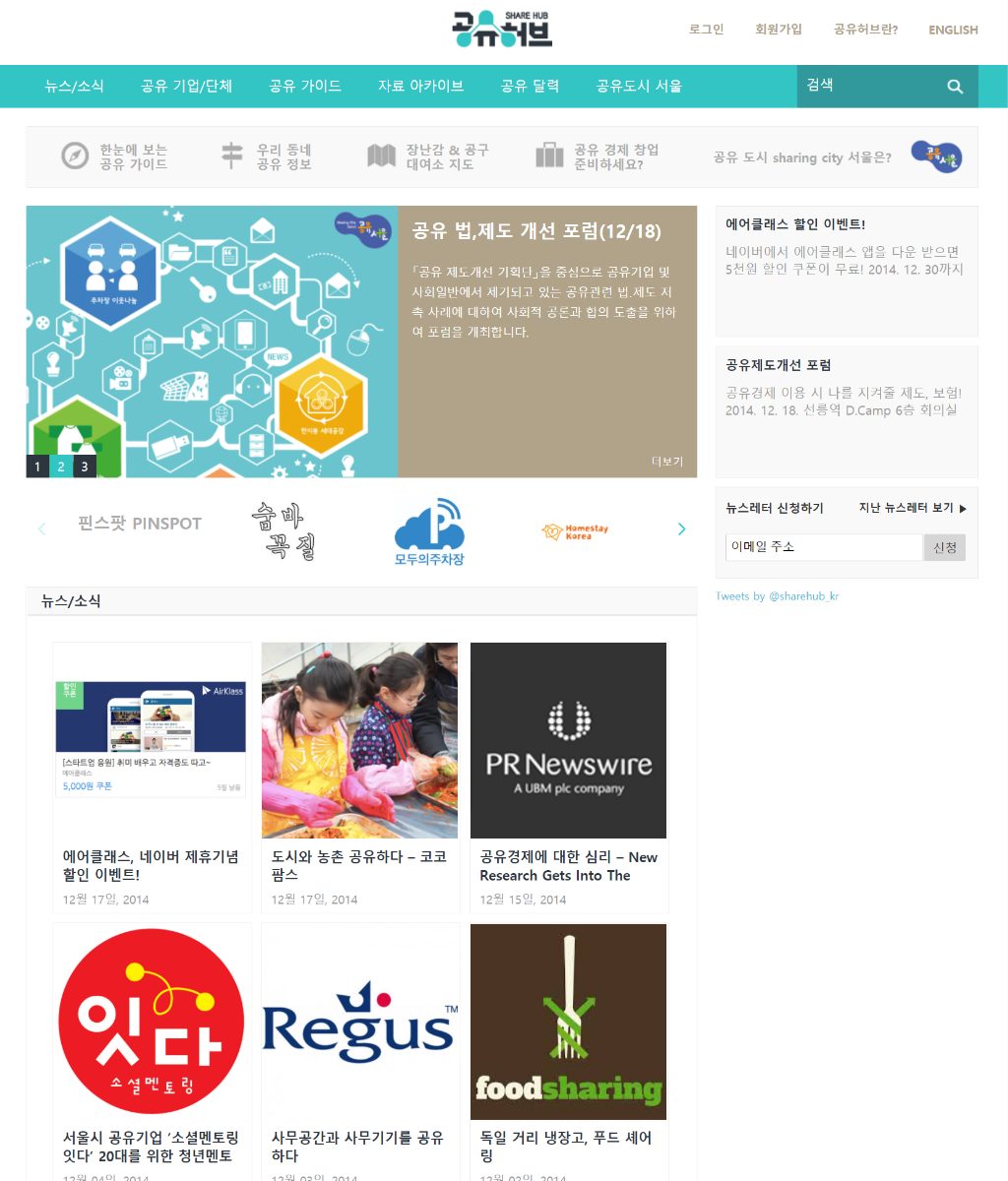 워드프레스를 이용하여 공유허브 홈페이지를 리뉴얼했습니다.