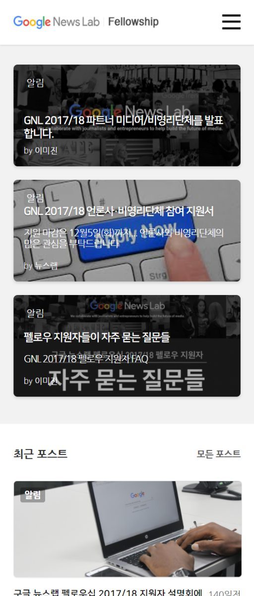 구글에서 운영하는 뉴스랩 펠로우쉽 홈페이지를 제작했습니다. 자체 개발한 CMS인 WithStories 를 이용하여 제작했습니다.