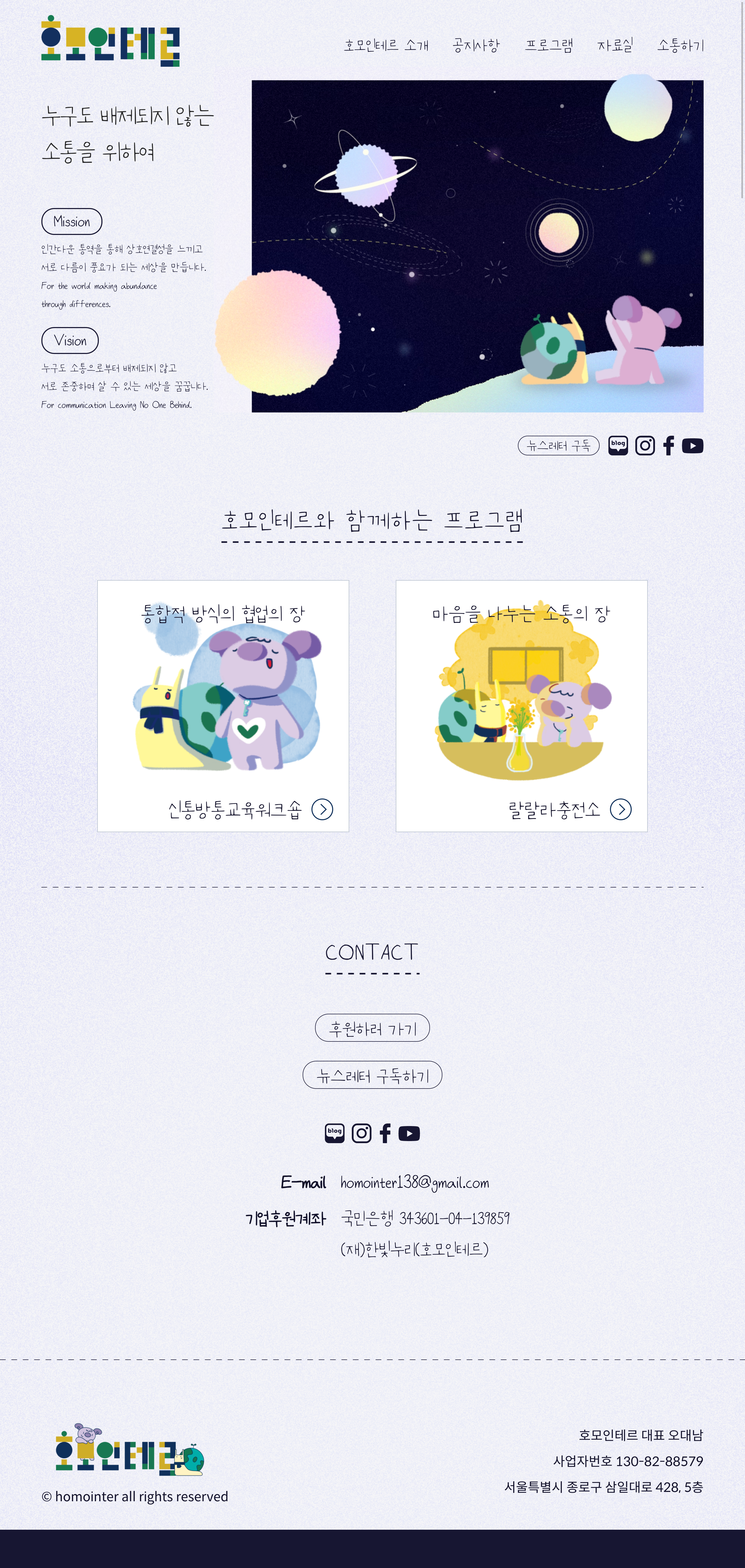 난민 이주민을 위한 통역을 위해 노력하고 있는 비영리단체 호모인테르 홈페이지를 개발했습니다.