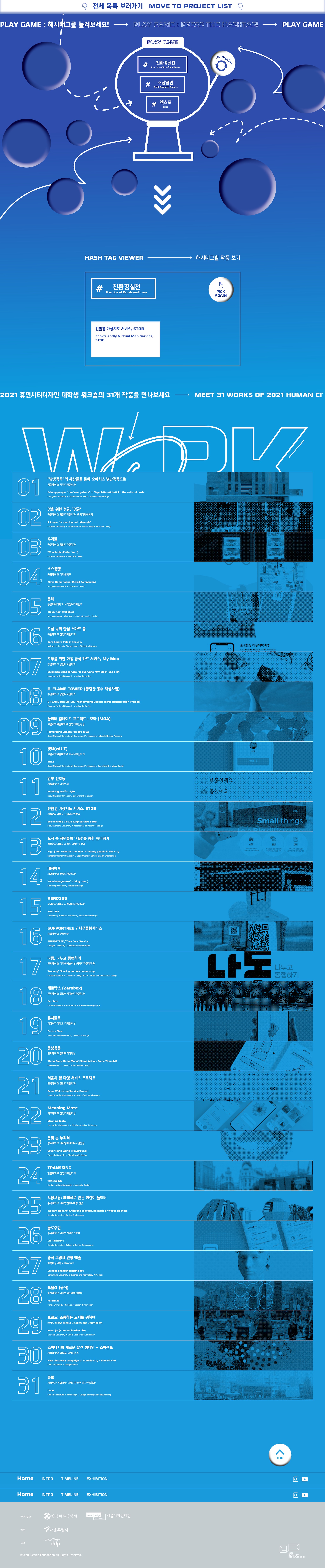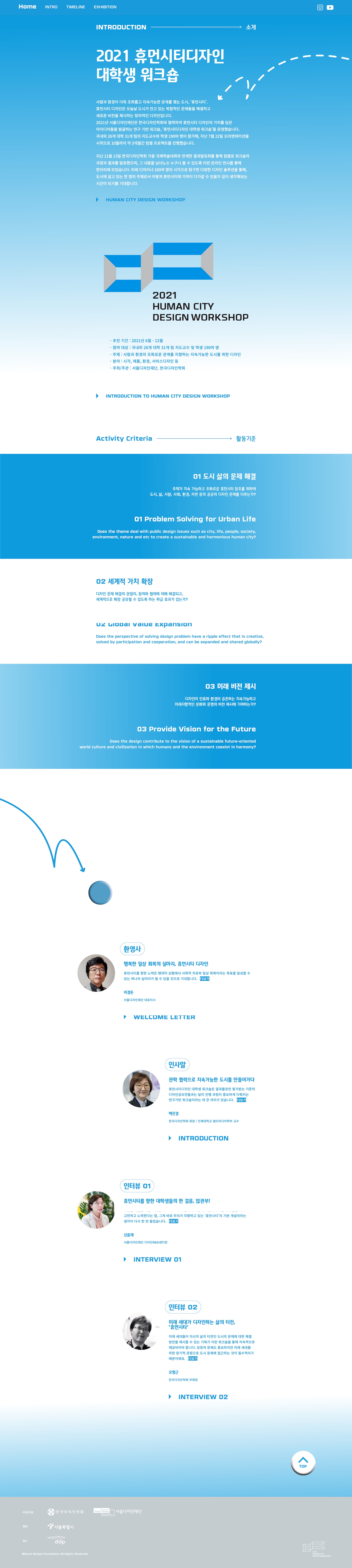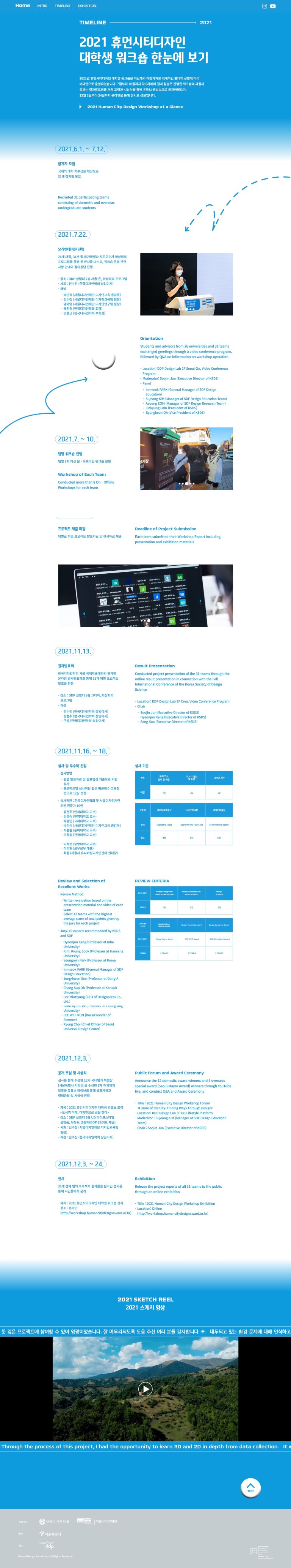 2021 휴먼시티 디자인 어워드의 대학생 워크숍 홈페이지를 개발했습니다.