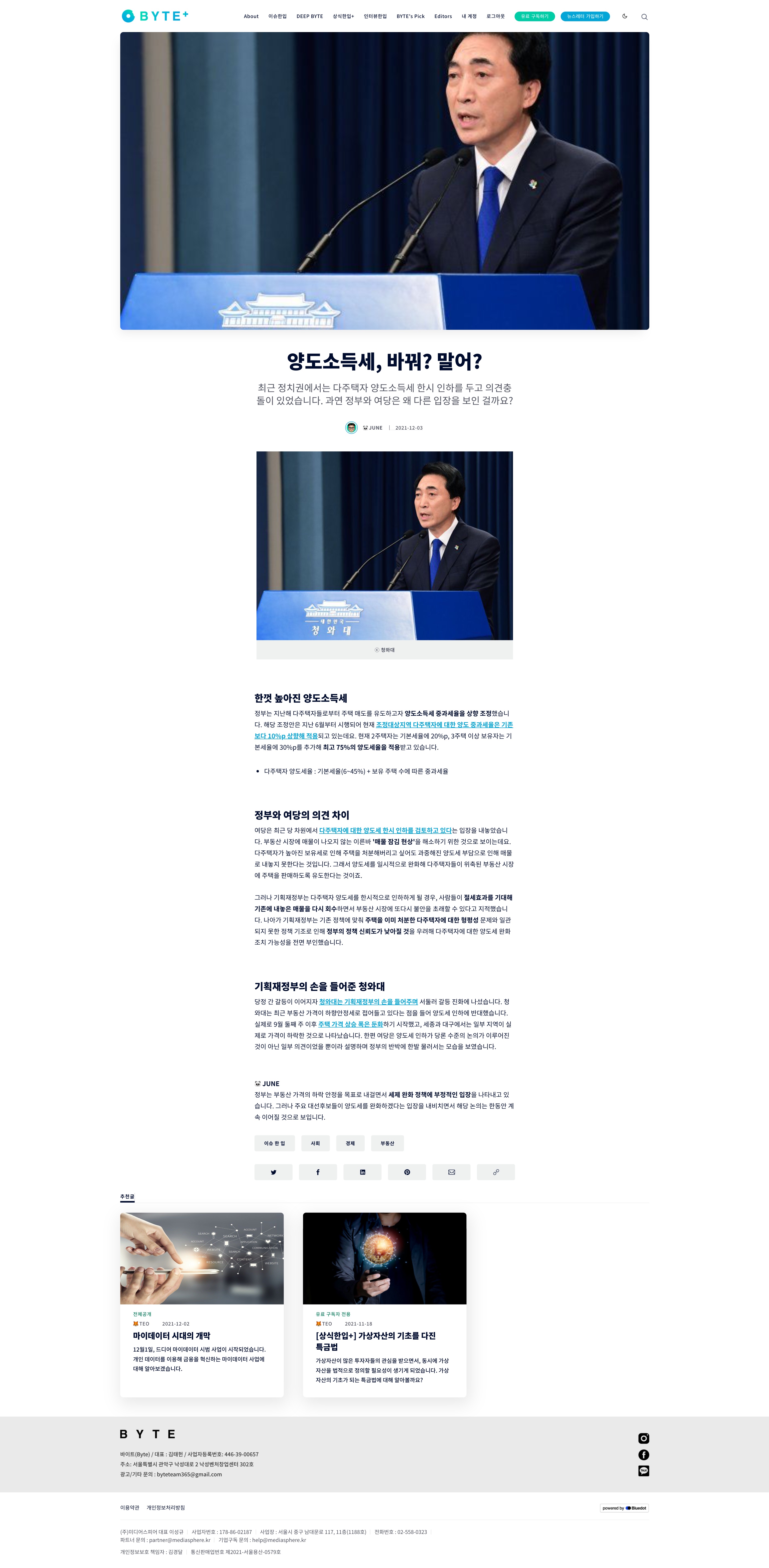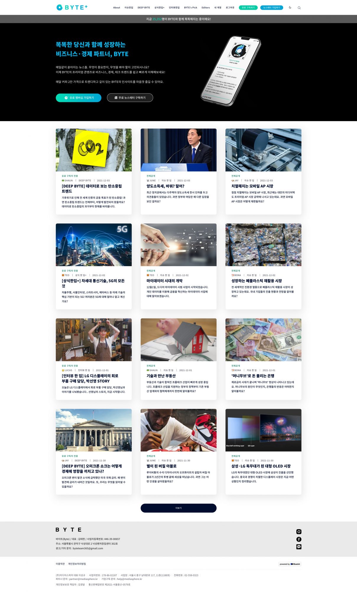 비즈니스·경제·기술 미디어 BYTE의 유료 구독형 홈페이지 BYTE+를 제작했습니다.