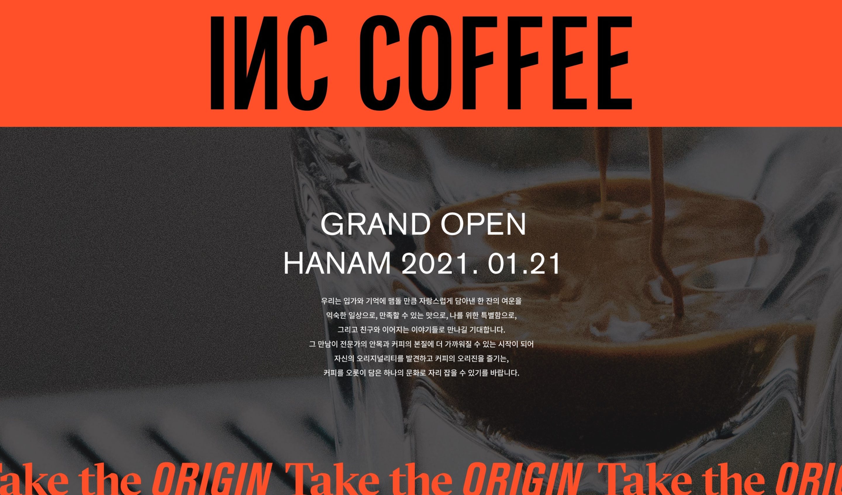 INC COFFEE 쇼핑몰 제작에 앞서 제작중에 방문하는 방문객들을 위한 티저 홈페이지를 개발했습니다.