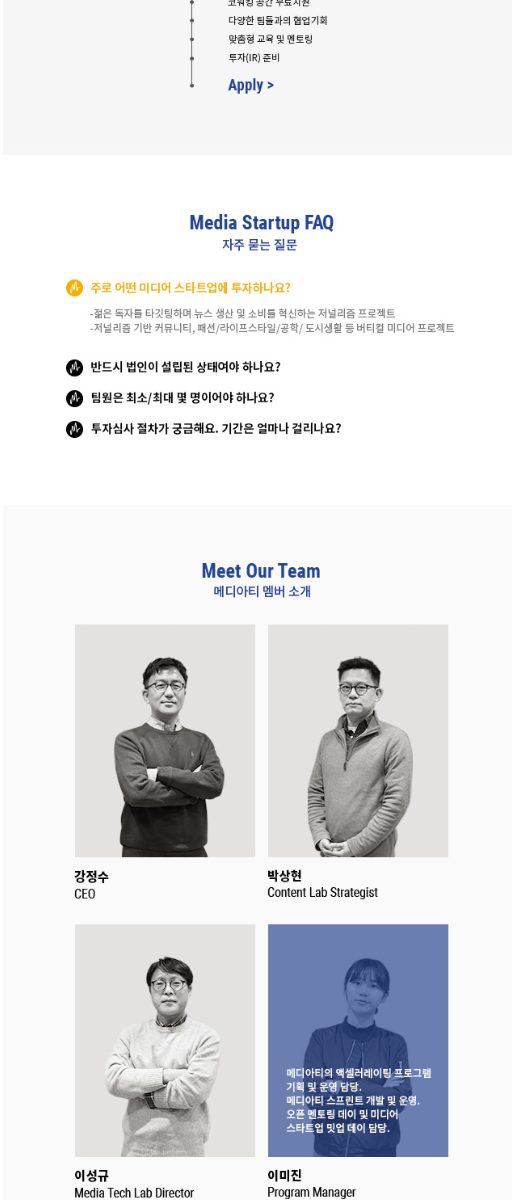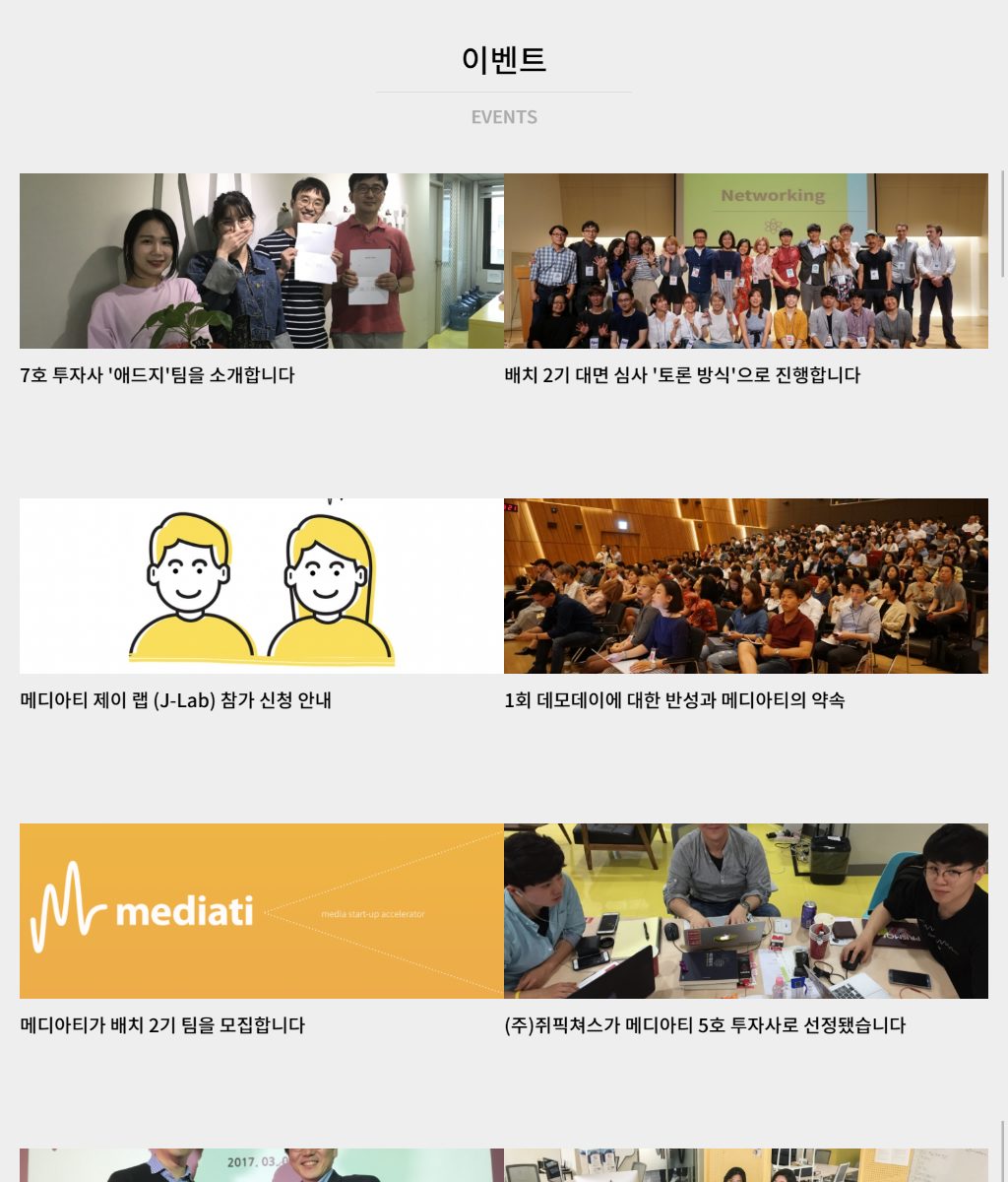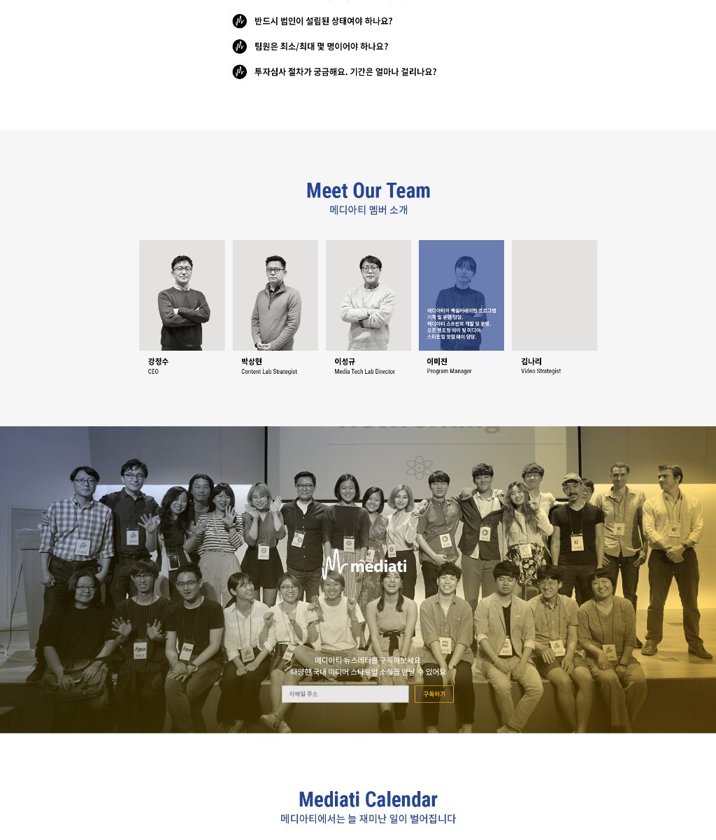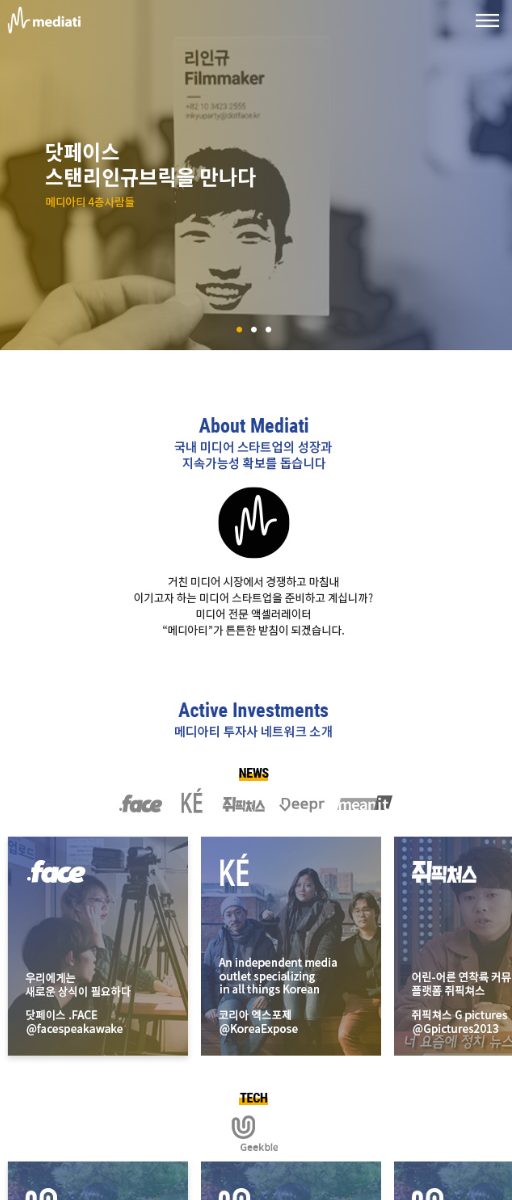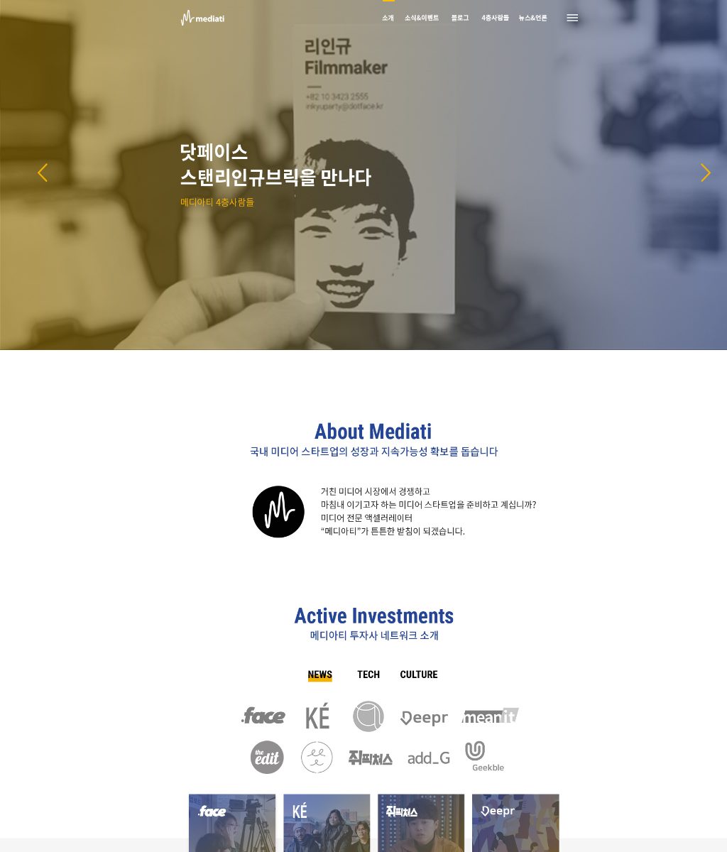미디어 엑셀레이터인 메디아티의 홈페이지를 자체 개발한 CMS인 WithStories 를 이용하여 제작했습니다.