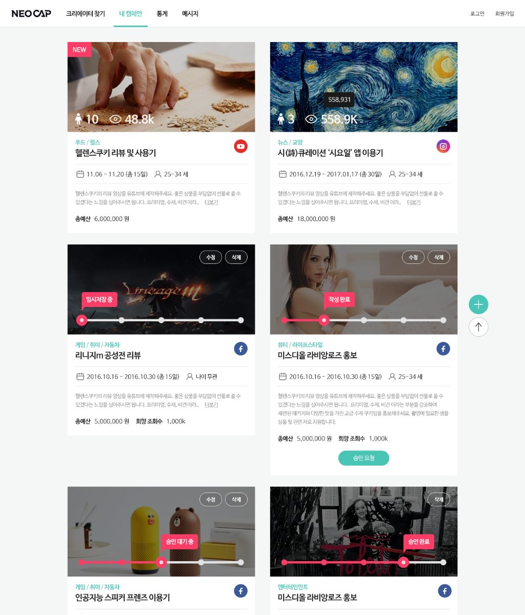2017년에 제작했던 네오캡의 리디자인을 진행했습니다.